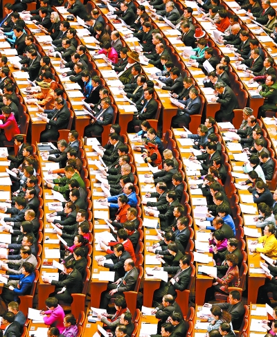 5日,第十二屆全國人民代表大會第三次會議在北京人民大會堂開幕。這是代表在認真聽會。新華社記者 陳建力攝? 來源:北京日報