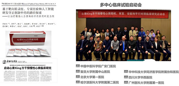 與中國中醫(yī)科學(xué)院廣安門醫(yī)院王階教授團(tuán)隊合作,用分子本草從傳統(tǒng)的經(jīng)典理論和經(jīng)驗用藥入手,開發(fā)了針對慢性心力衰竭的藥物,在臨床觀察中表現(xiàn)出非常好的改善水腫、喘憋、疲倦乏力效果,有效率達(dá)到90%以上。目前正在中國中醫(yī)科學(xué)院廣安門醫(yī)院、復(fù)旦大學(xué)附屬中山醫(yī)院、四川大學(xué)華西醫(yī)院等七家醫(yī)院開展隨機(jī)雙盲安慰劑對照臨床研究。