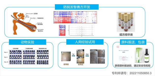 以市場需求巨大的防脫發(fā)為例,基于毛乳頭細(xì)胞藥篩,從600多種中藥中,獲得1項防脫生發(fā)智善方,可以有效的促進(jìn)小鼠和人體的毛發(fā)再生,已完成原料報送、包裝,準(zhǔn)備上市階段。