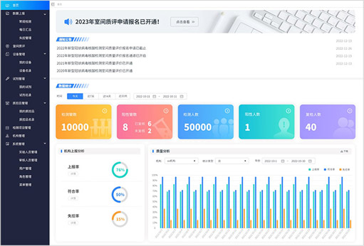 臨床檢驗(yàn)結(jié)果互認(rèn)信息化平臺建設(shè)目標(biāo)是實(shí)現(xiàn)對臨床檢驗(yàn)機(jī)構(gòu)的室內(nèi)質(zhì)控、室間質(zhì)評數(shù)據(jù)的自動、實(shí)時監(jiān)管,保證檢測結(jié)果的規(guī)范化并為臨床結(jié)果互認(rèn)信息化平臺提供支持。其中,室內(nèi)質(zhì)控和室間質(zhì)評數(shù)據(jù)上報及檢驗(yàn)質(zhì)量匯總評價包括基本信息維護(hù)、室內(nèi)質(zhì)控數(shù)據(jù)上報、室內(nèi)質(zhì)控數(shù)據(jù)采集及信息反饋、實(shí)驗(yàn)室月度質(zhì)量分析報告。室內(nèi)質(zhì)控和室間質(zhì)評數(shù)據(jù)自動采集及質(zhì)量評價的動態(tài)管理包括:臨床檢測設(shè)備與本系統(tǒng)數(shù)據(jù)傳輸接口,實(shí)現(xiàn)室內(nèi)質(zhì)控數(shù)據(jù)自動采集功能;基于自動上報數(shù)據(jù),實(shí)現(xiàn)實(shí)驗(yàn)室質(zhì)量評價的動態(tài)管理功能。